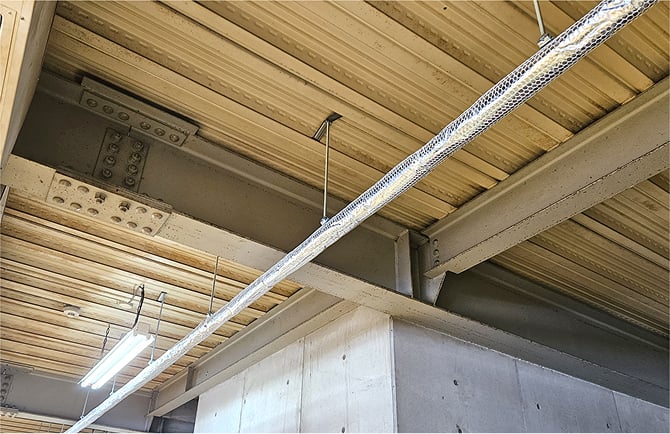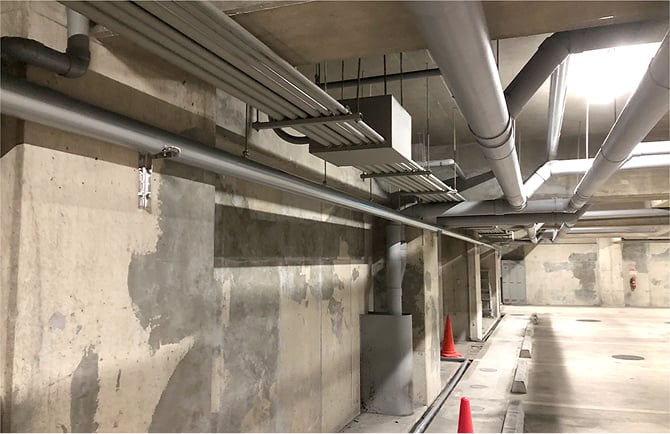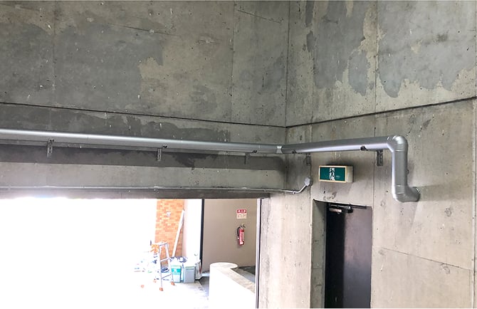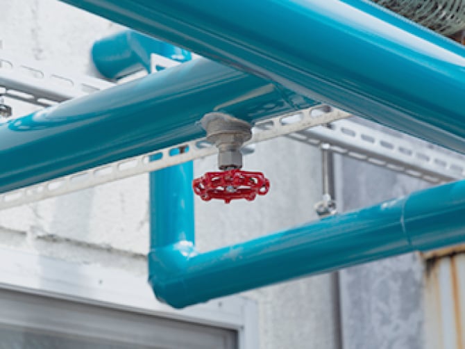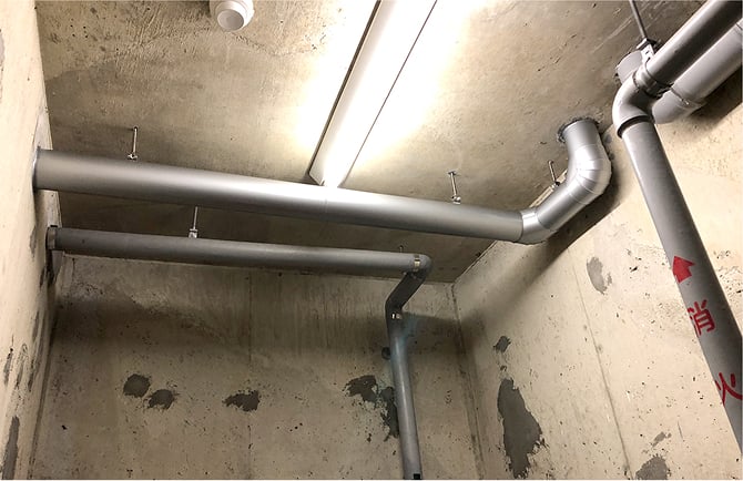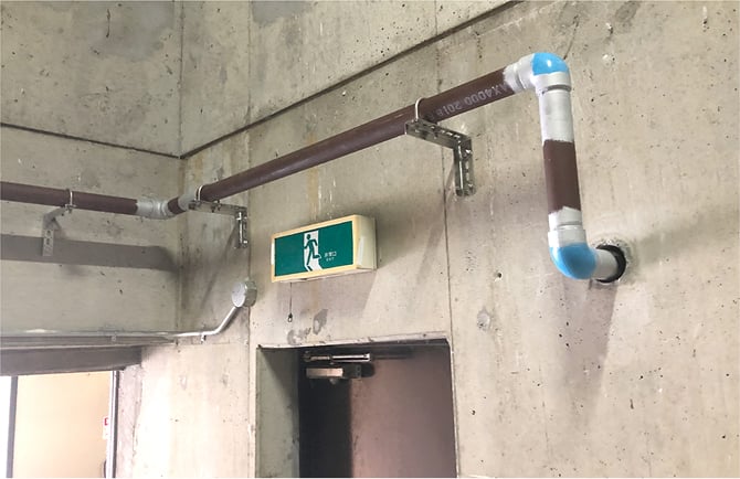 配管は防火区画内ですので、事前に消防署と打ち打合せをして決定したSGP-VA50を使用しています。(消防署へ施工の報告をいたします。)