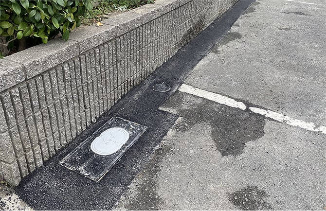 その後道路管理者と面積立会を行い本復旧する面積が決定すると、仮復旧した舗装を解体して本復旧します。(画像は仮復旧です)