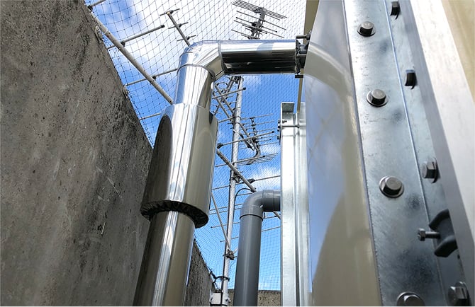 高架水槽方式を貯水槽と高架水槽を使用しない直結増圧方式へ変更する工事です。