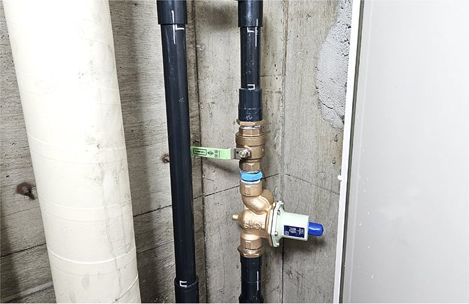 増圧ポンプで水圧が上がると、既設2次側配管の漏水が懸念されますので、減圧弁を各階に設置して水圧を落として水を使用します。