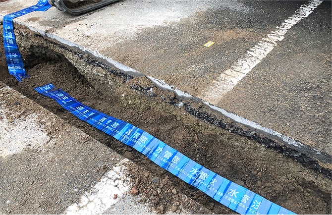 埋め戻し途中に埋設物標識シートを入れて埋め戻します。