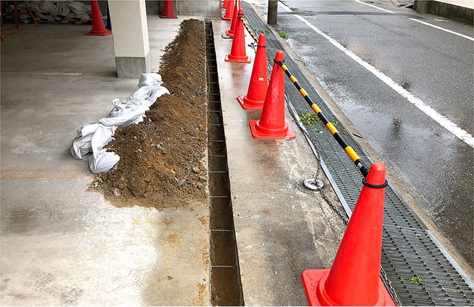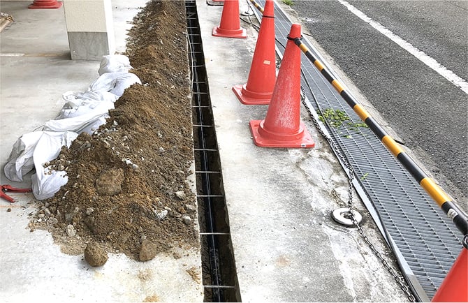 外部掘削と同時に敷地内部も配管を新設するために掘削します。