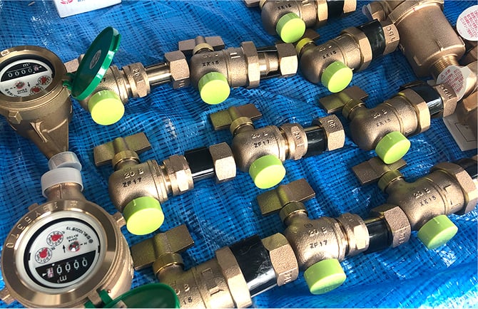 本件では各部屋の止水栓と市支給品のメーター交換吸排気弁の取付が必用ですので作業前にサイズや個数、型番などを確認します。
