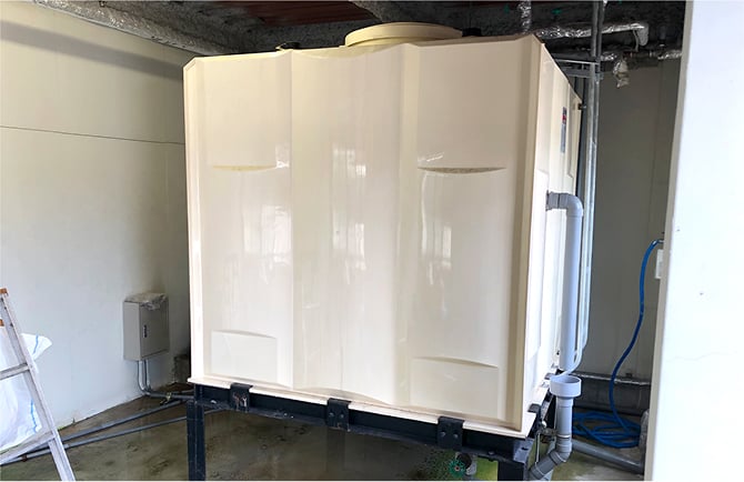 新規高架水槽は積水製2x2x2H 1.5GのFRPパネルタンクです。