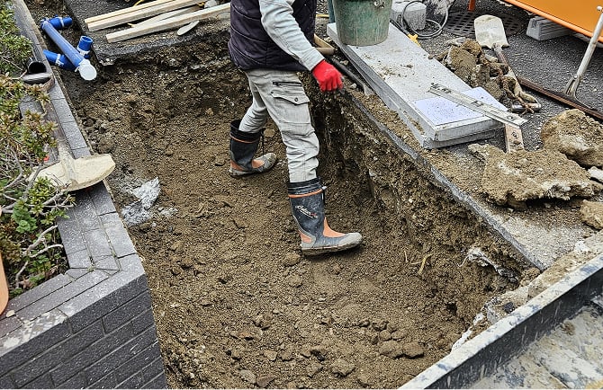 敷地内に新しく水道メーターや止水栓を設置する場所を掘削します。