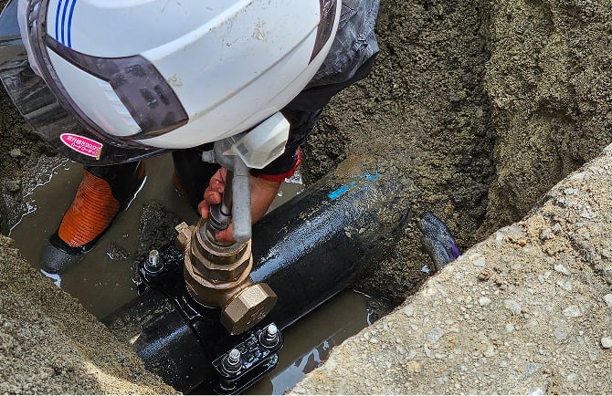 新設した給水管に専用の機械で給水管に耐圧します。