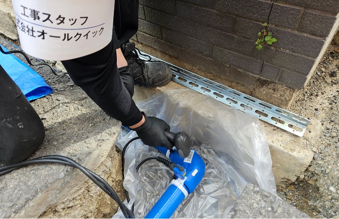 取り出しが完了すると専用の防食フイルムで、腐食対策(ポリエチレンシート工法)を行います。