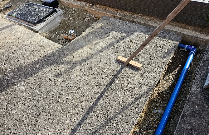 新しい水道メーターを取付後土間を仕上げて完了です。