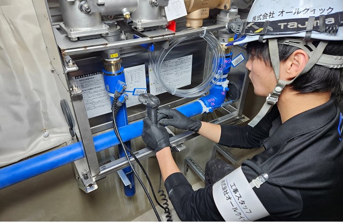 接続が完了すると増圧ポンプの試運転調整を行います。