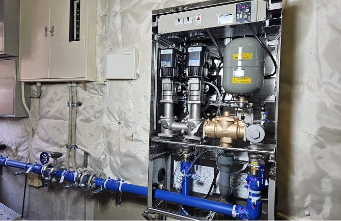ポンプ直送方式から直結増圧方式への給水方式変更工事