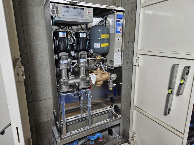 増圧ポンプの老朽に伴い交換工事を実施しました。